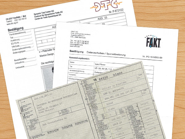 Conseil pour les modifications et transformations de véhicules et fourniture de certificat suisses pour jantes, pneus, échappements et pièces carrosseries.